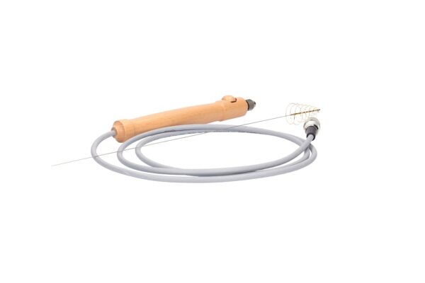 The Rayotensor with wooden handle is supplied with a connection cable and the antenna spring. The wooden handle has a protective coating.